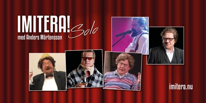 Imitera! Solo med Anders Mårtensson. Nu är han tillbaka med alla sina träffsäkra imitationer. 2012 turnerade Anders i Riksteaterns regi med föreställningen Imitera!, som uppmärksammades i TV4 och spelades i hela landet. Nu är han här med uppdaterad föreställning med både gamla och nya figurer och vässade texter. Vi får möta alla hans figurer och personer från förr och nu. Tommy Körberg, Kalle Moraeus, Cornelis, Lasse Berghagen är några av de som gestaltas med glimten i ögat, med både humor och allvar och ibland kusligt likt..!