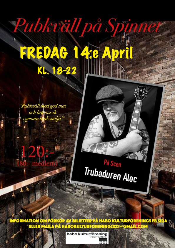 Då det är begränsat antal platser kan du som vill förköpa dina biljetter kontakta Peter Damberg på messanger eller skicka ett mail på habokulturforening2023@gmail.com