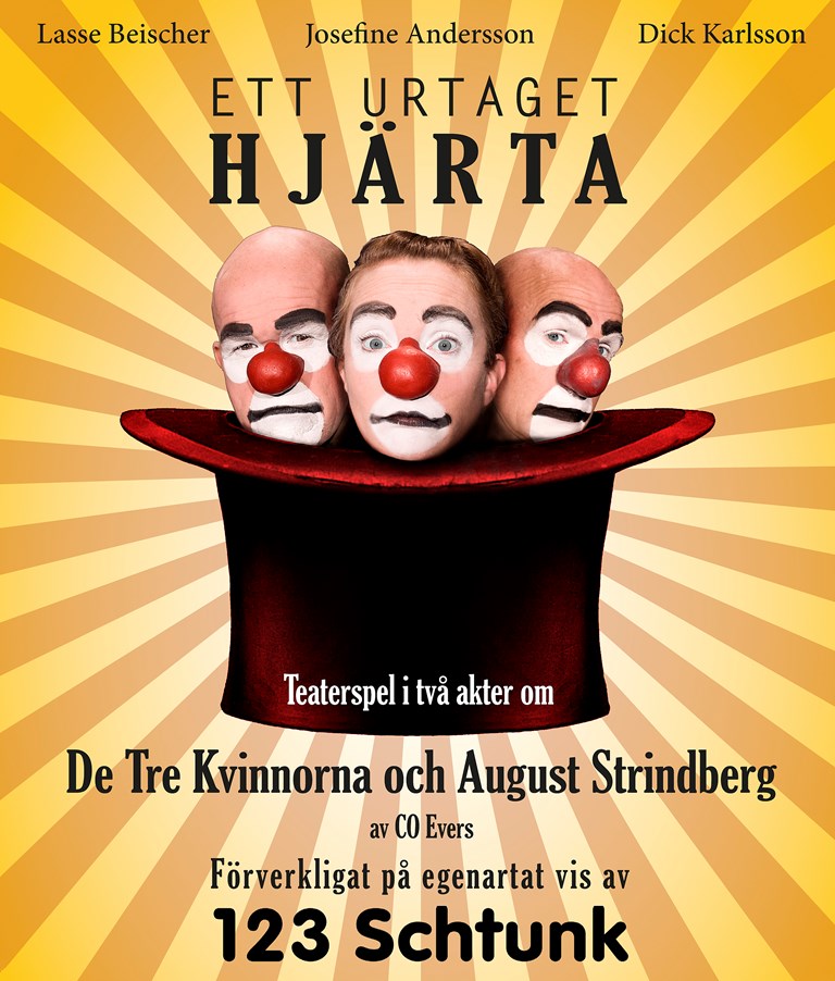 Ett urtaget Hjärta är ett nyskrivet teaterspel i två akter om genier och relationer. Får det plats fler genier än ett i en kärleksrelation? Följ med på en sprakande, genialisk och äktenskaplig resa tillsammans Siri von Essen, Frida Uhl, Harriet Bosse, August Strindberg och hunden Mutte. Allt är förstås kryddat med 1 2 3 Schtunks nyskrivna musik!