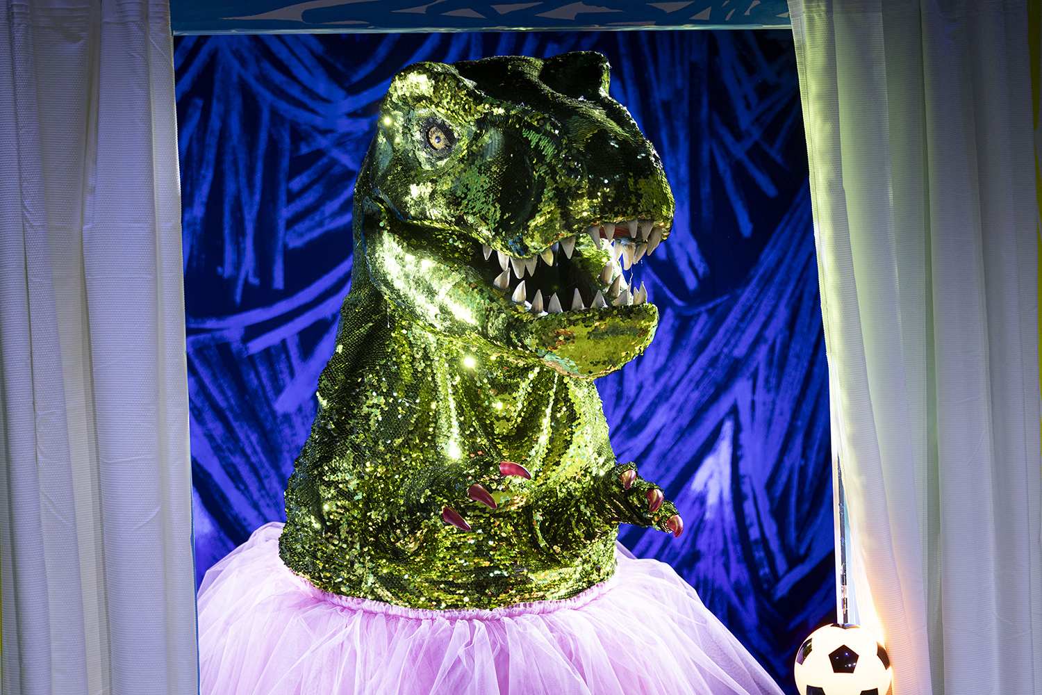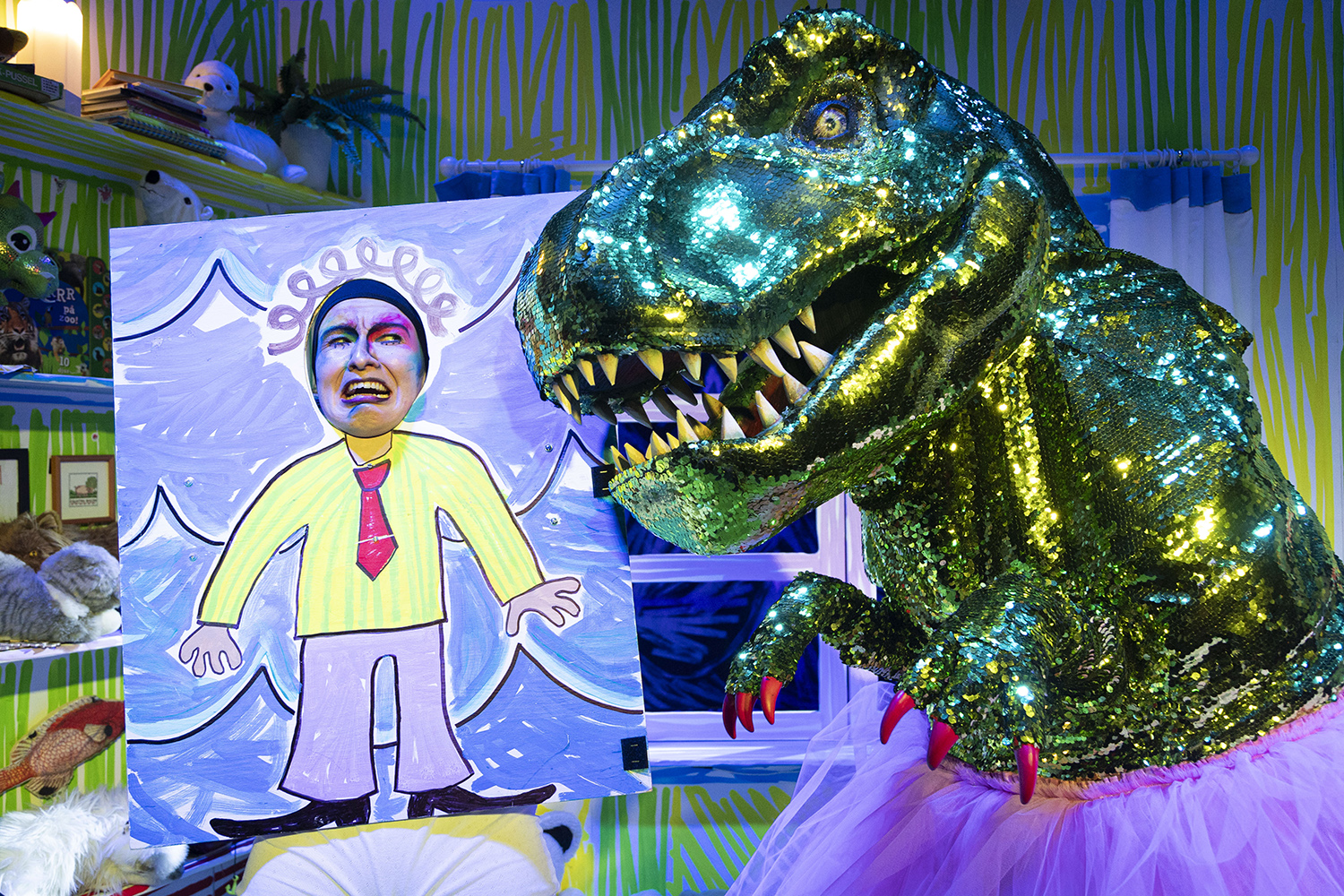 en visuellt maximalistisk föreställning, fylld med tvära kast och eftertänksam humor. I centrum står fantasin och den vilda leken, en dinosaurie och en jätte.